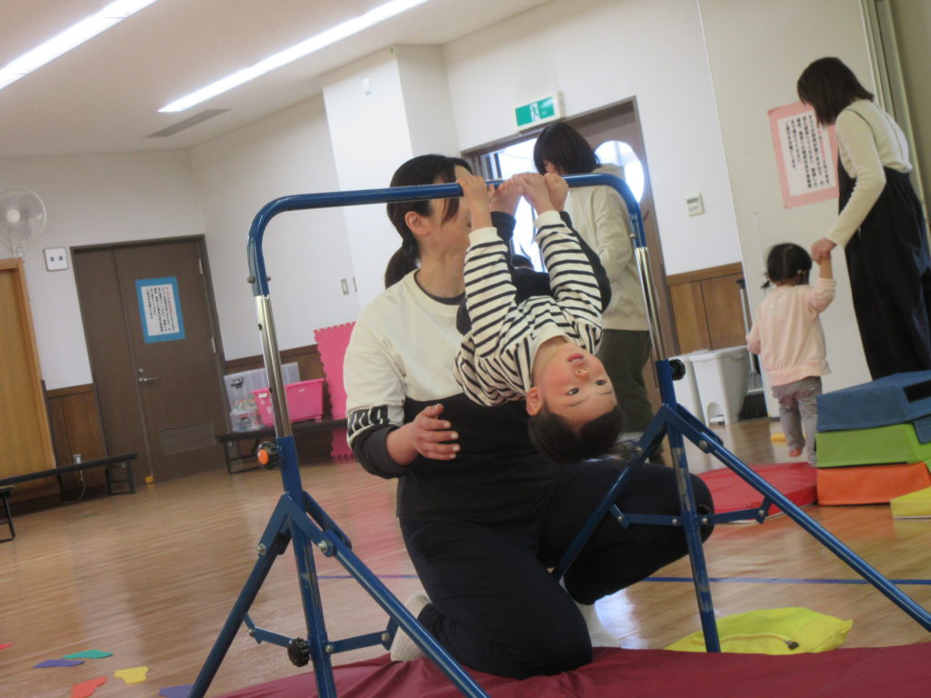 トンネルをくぐったら次は鉄棒です。 ちょっとドキドキするけど先生が教えてくれるから怖くないよ!