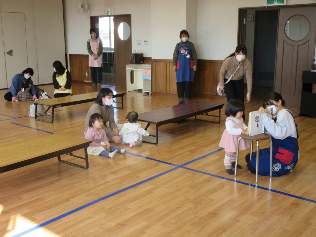 最初に先生が絵本を読んでくれました。