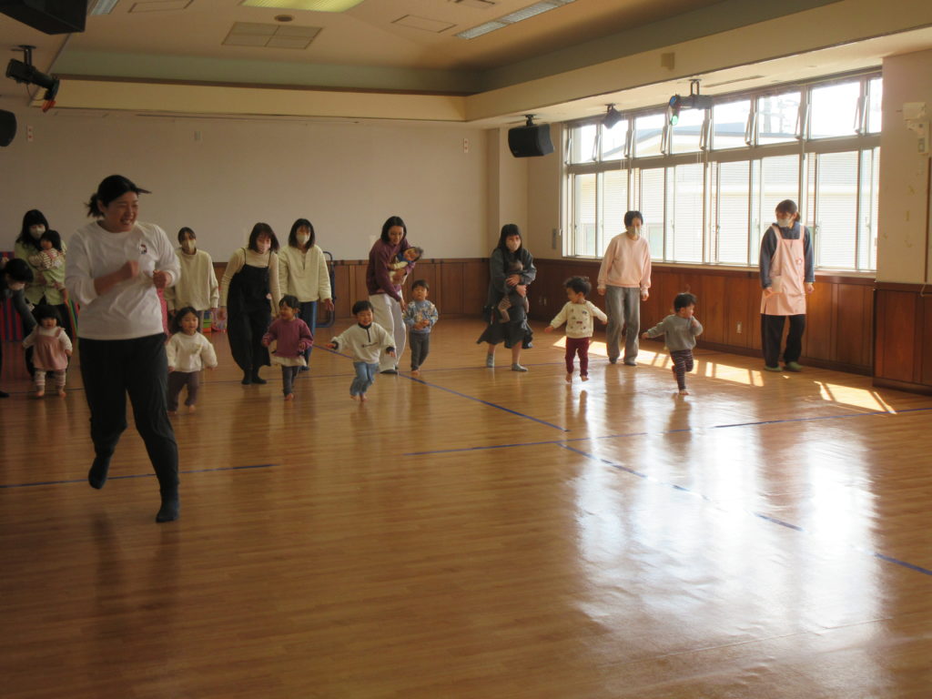 まずは先生とママと一緒にみんなでかけっこ!!